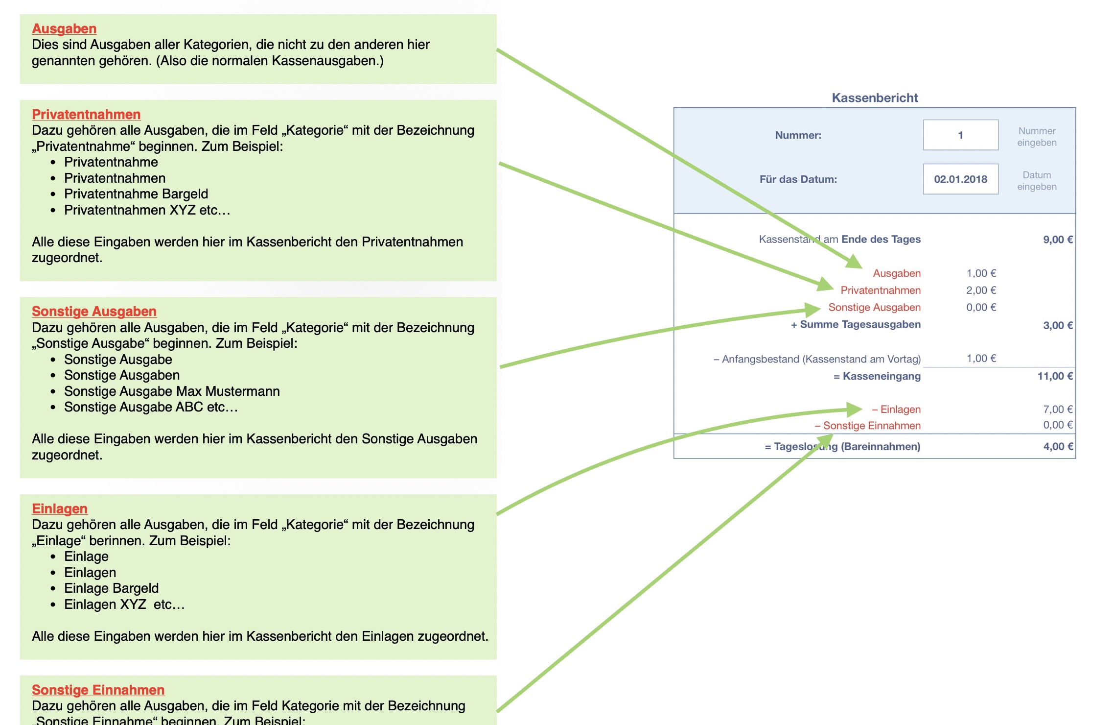 • Tagesliste mit jeweiligen Anfangs- und Endstand der Kasse pro Tag für einen gesamten Monat
