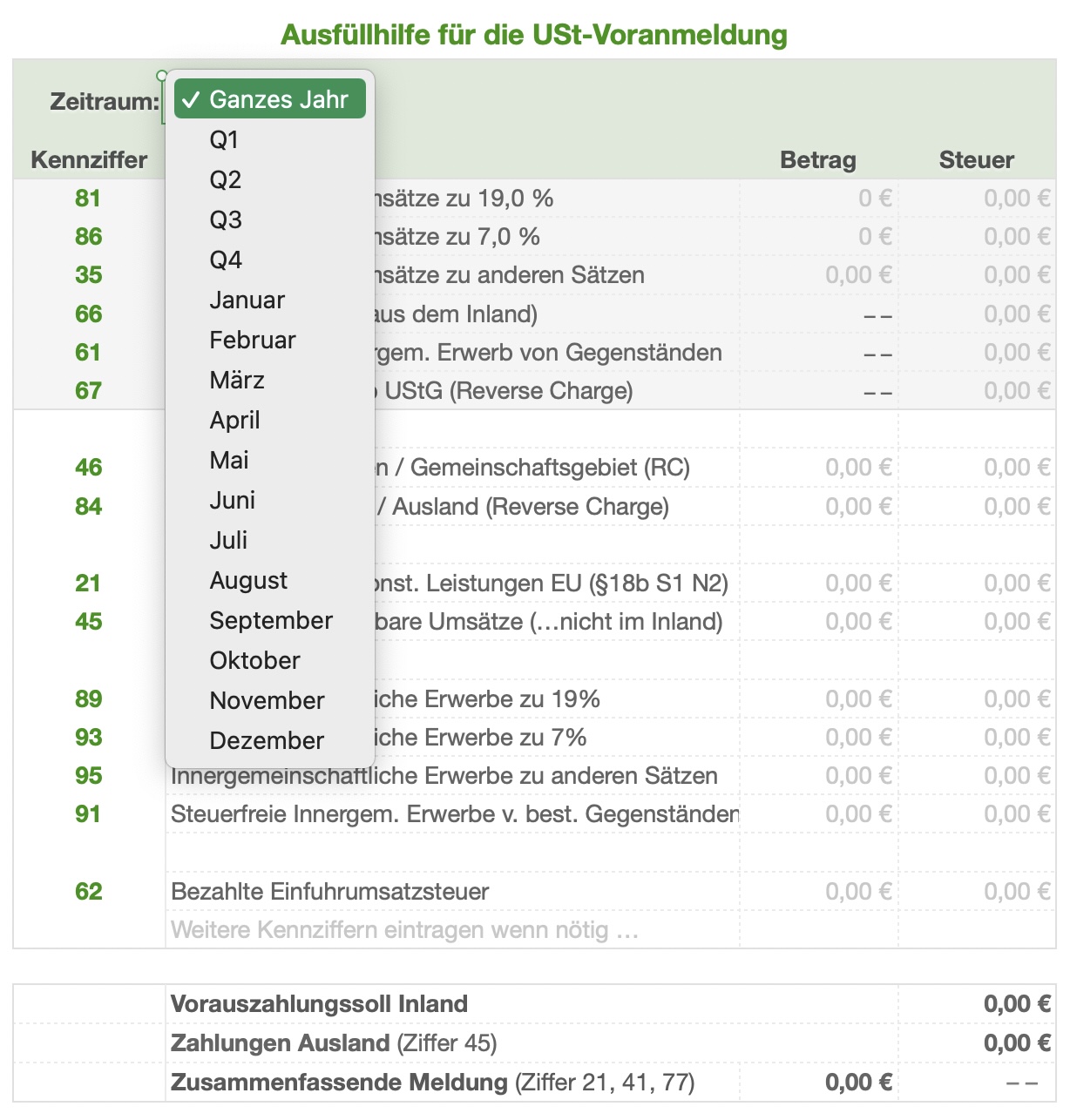 • Berechnung der monatlichen und quartalsweisen USt-Voranmeldung
